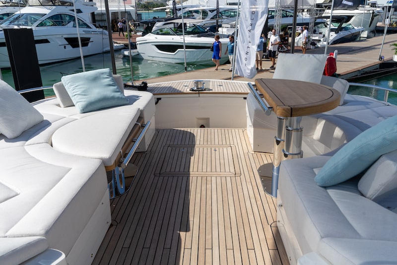 Considering that many American-style enclosed flybridge models do not even have a bow cockpit and that only few boats of the same size have one of these dimensions, we find it is a Mediterranean touch that will act as a bridge between the US and the European market.
