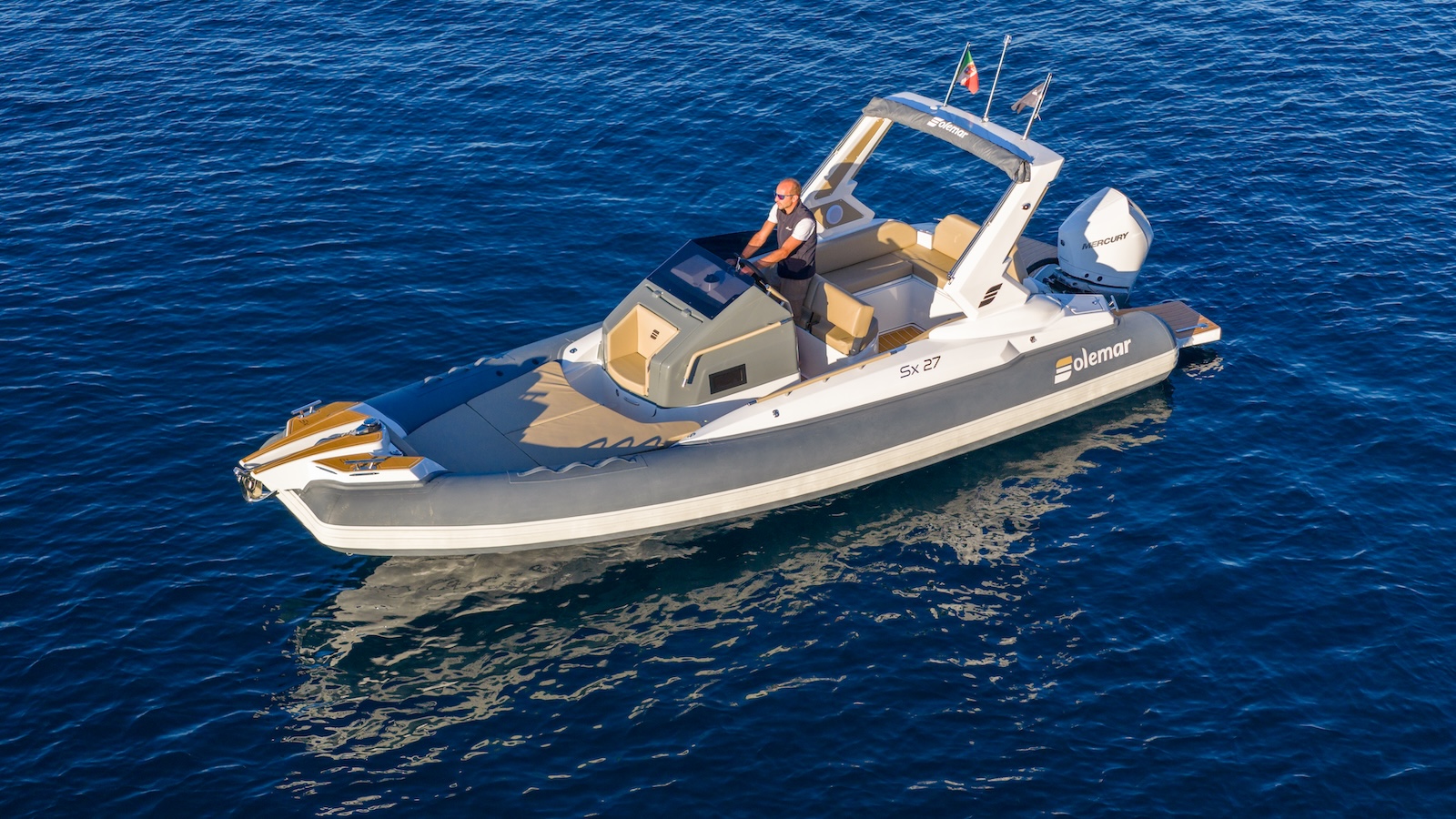 It’s time to test the handling. At 30 knots, we make a full right turn: the trajectory is tight, smooth, and secure. The boat remains stable, shows no tendency to drift outward, and maintains its speed with impressive consistency. Even when we countersteer, the behavior stays unchanged. Even when we hit higher cross waves, the hull rises gently and lands progressively, without harsh impacts or excessive noise. This confirms the quality of a truly well-designed hull, the result of the experience that has long made the Solemar name a synonym for reliability at sea. We head offshore to test the top speed. The sea isn’t exactly calm, but we decide to line up with the waves and open the throttle fully. The Mercury V8 pushes with growing strength, and the hull responds with precision and balance. 40 knots, 45, 47… up to 47.8 knots! An excellent performance, especially considering the choppy conditions. The behavior remains predictable and controlled at all times: the boat holds its grip, and even during full-throttle acceleration, it conveys a reassuring sense of safety. With the sea on our side, the Solemar SX27 confirms itself as a true seagoing RIB, capable of combining comfort and performance in a rare balance for its category. It’s clear that behind this revival lies deep design work—one that respects Solemar’s heritage while bringing it into the present with modern materials and innovative solutions.