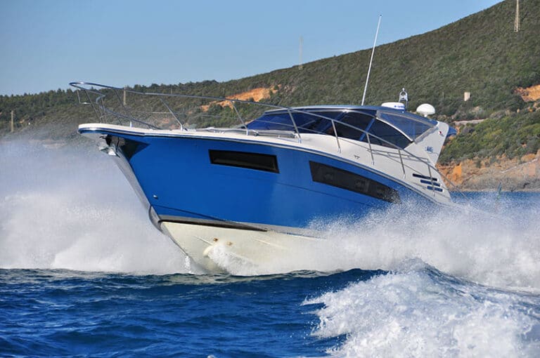 ” Our particularly deep hulls are made with an advanced technology that gives the hull a good level of speed as well as excellent balance. Waterlines are soft and allow to sail at around 18-20 knots. They are specifically designed to deal with the most insidious waves, while stability is guaranteed by the enlarged bow, which drastically reduces the rolling motion. Another outstanding feature is the balanced distribution of weights, which allows to fully take advantage of the engine thrust while mainting a good trim and enjoing low fuel consumption. In short, we do not disdain performance. However, what is really important for us is the sailing comfort at cruising speed”.