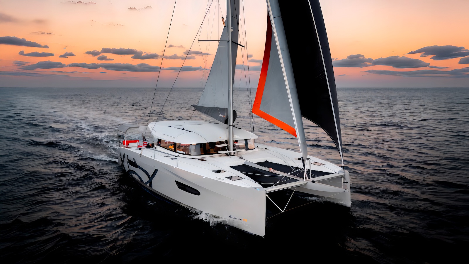 All that’s left is to sail and enjoy the wind in your face—whether you’re up front on the large trampoline or comfortably seated aft behind the helm, which, thanks to its unique positioning, offers equally panoramic and thoroughly enjoyable visibility.