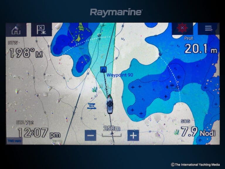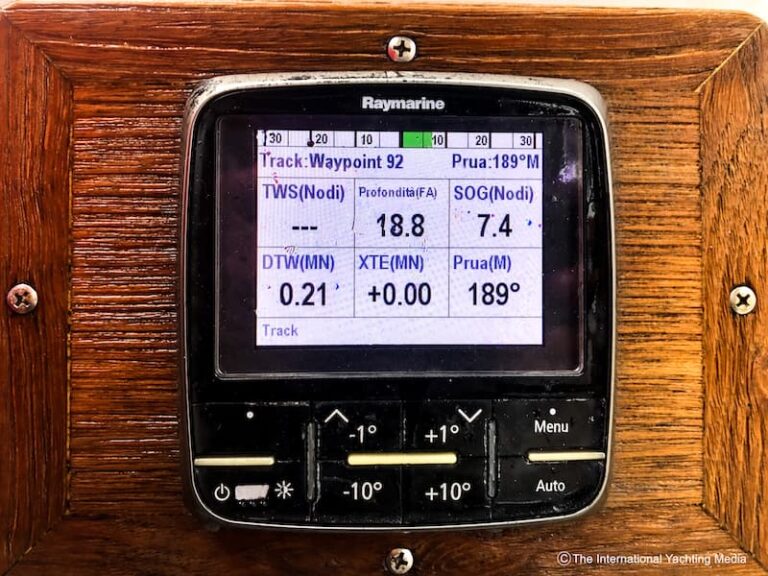 It’s 06:50 in the morning, the weather is fine, the air is cold, the wind light, the forecasts call for good weather, crosswinds, upwind up to 10/15 knots and moderate waves. I like electronic instruments, so I immediately start “playing” with the new LighHouse operating system that I find very fast and responsive, with instant WiFi interface with the pilot, the radar and the VR camera mounted on the mast.